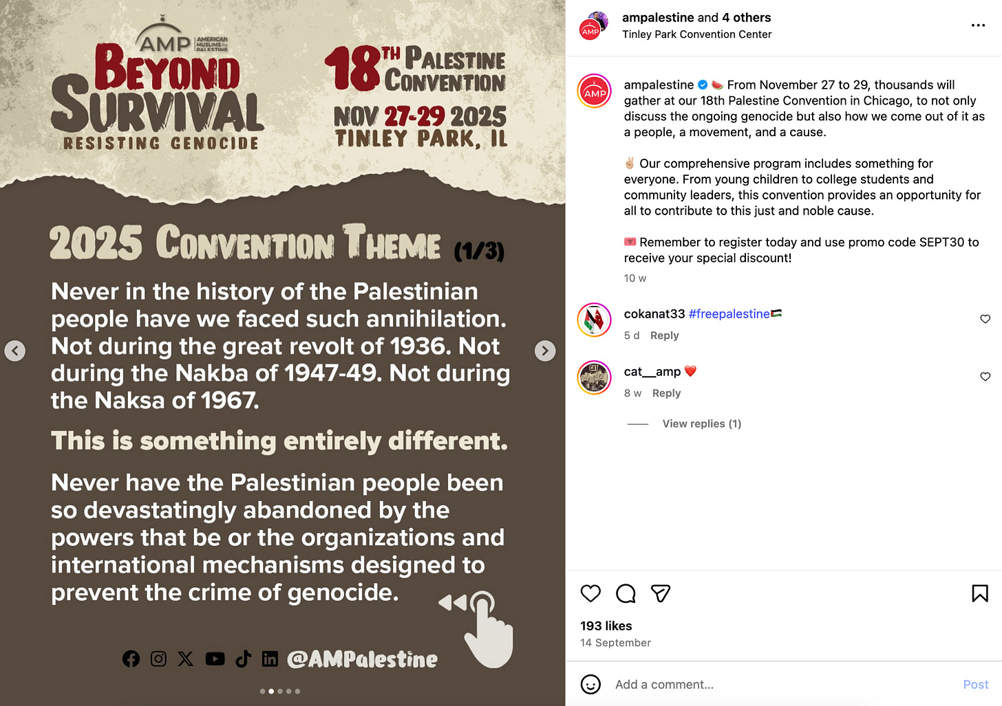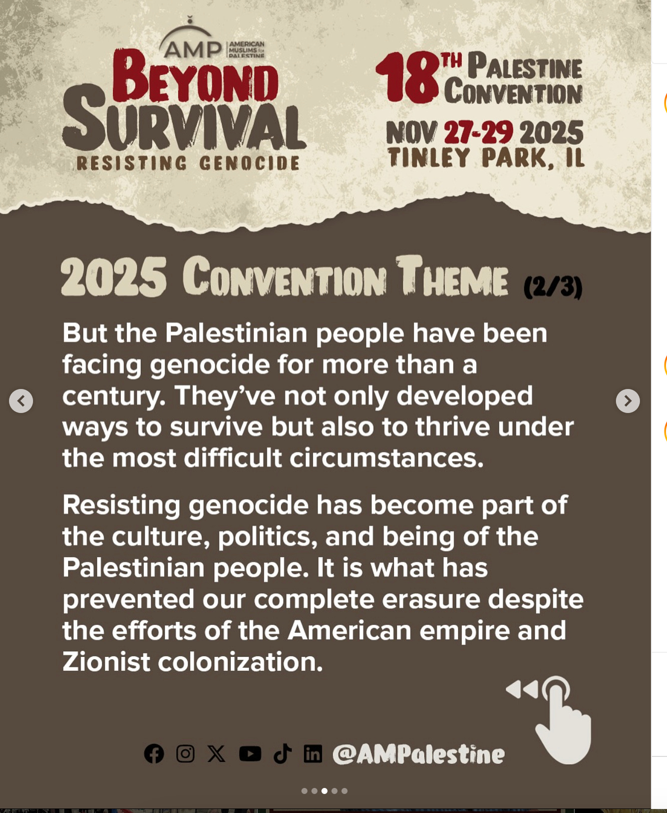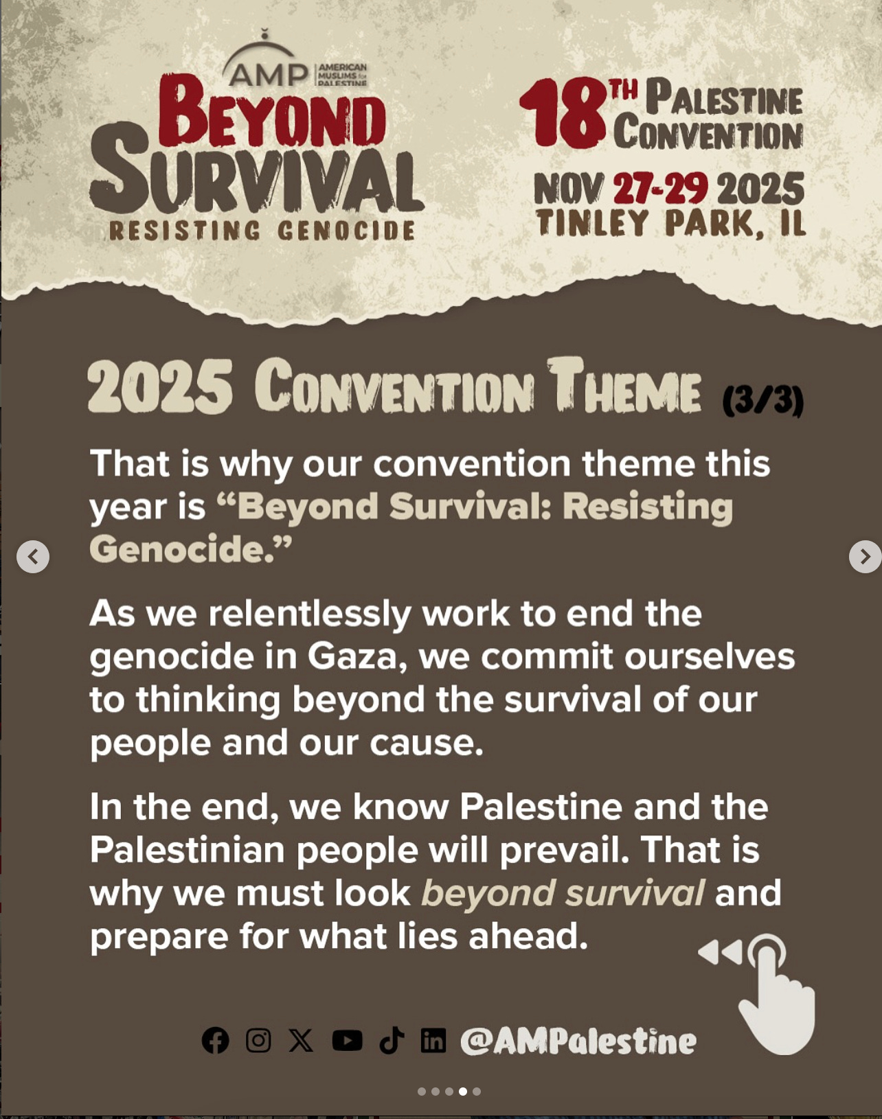 American Muslims for Palestine, under state and federal investigations for alleged support for Hamas and terror financing, is holding its annual “Palestine Convention” in Tinley Park, Illinois this weekend.