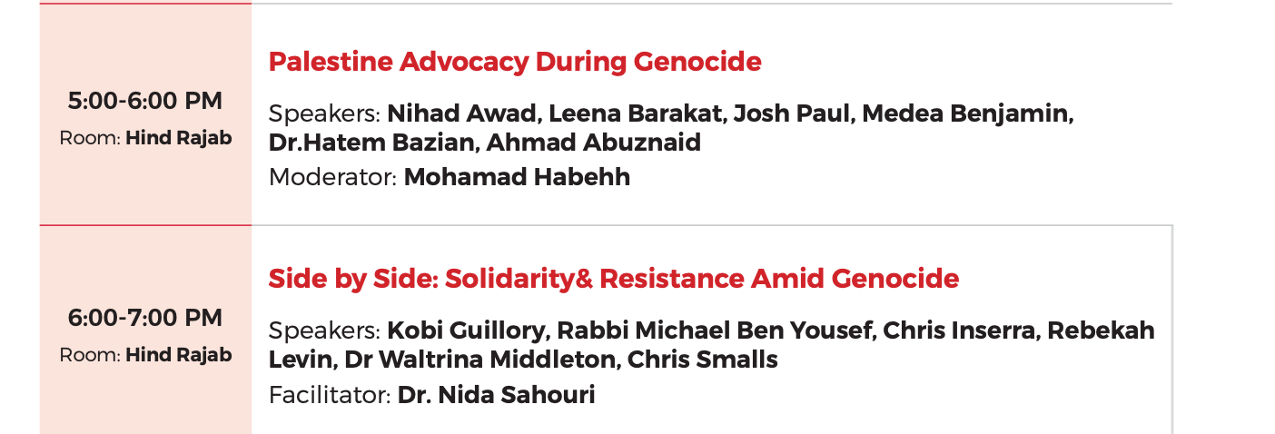 After that is “Zionist Busters” - “Come learn points to use to deflate common Zionist talking points.” This session is being run by Tarek Khalil.