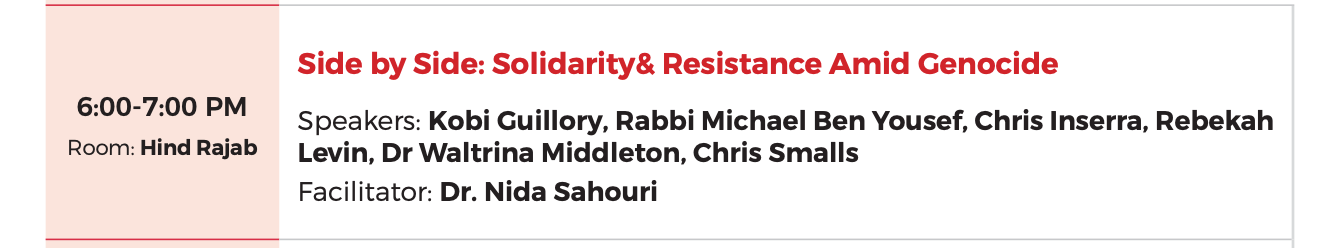 Guillory’s panel is “Side by Side: Solidarity & Resistance Amid Genocide.”