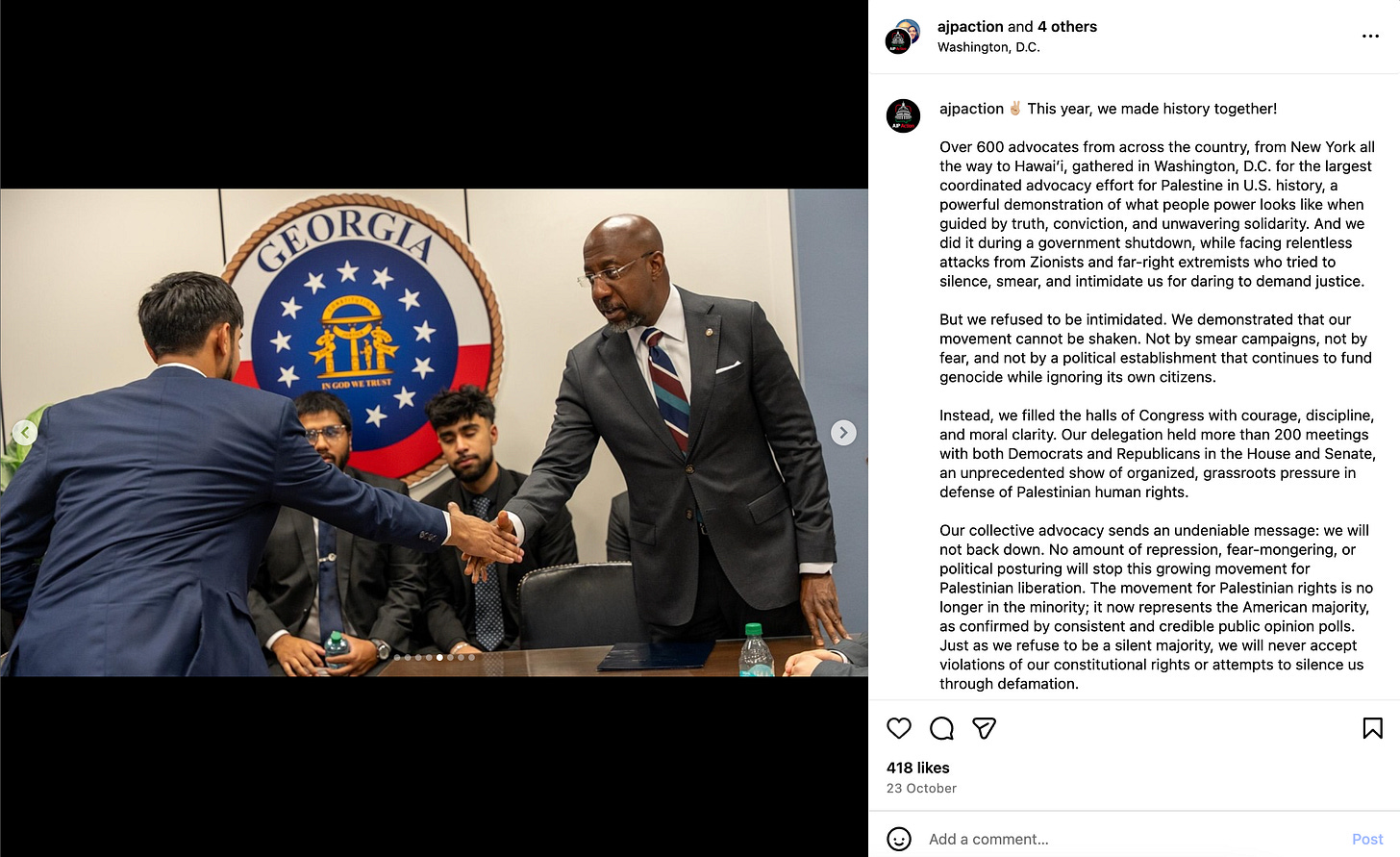 Below, members of the advocacy day meet with Senator Raphael Warnock of Georgia