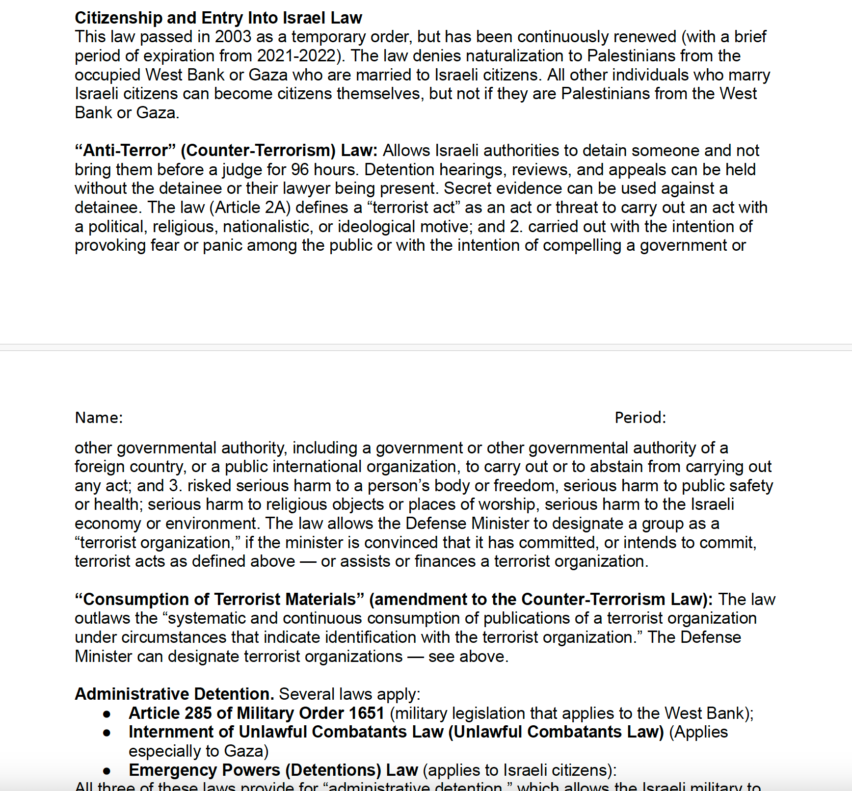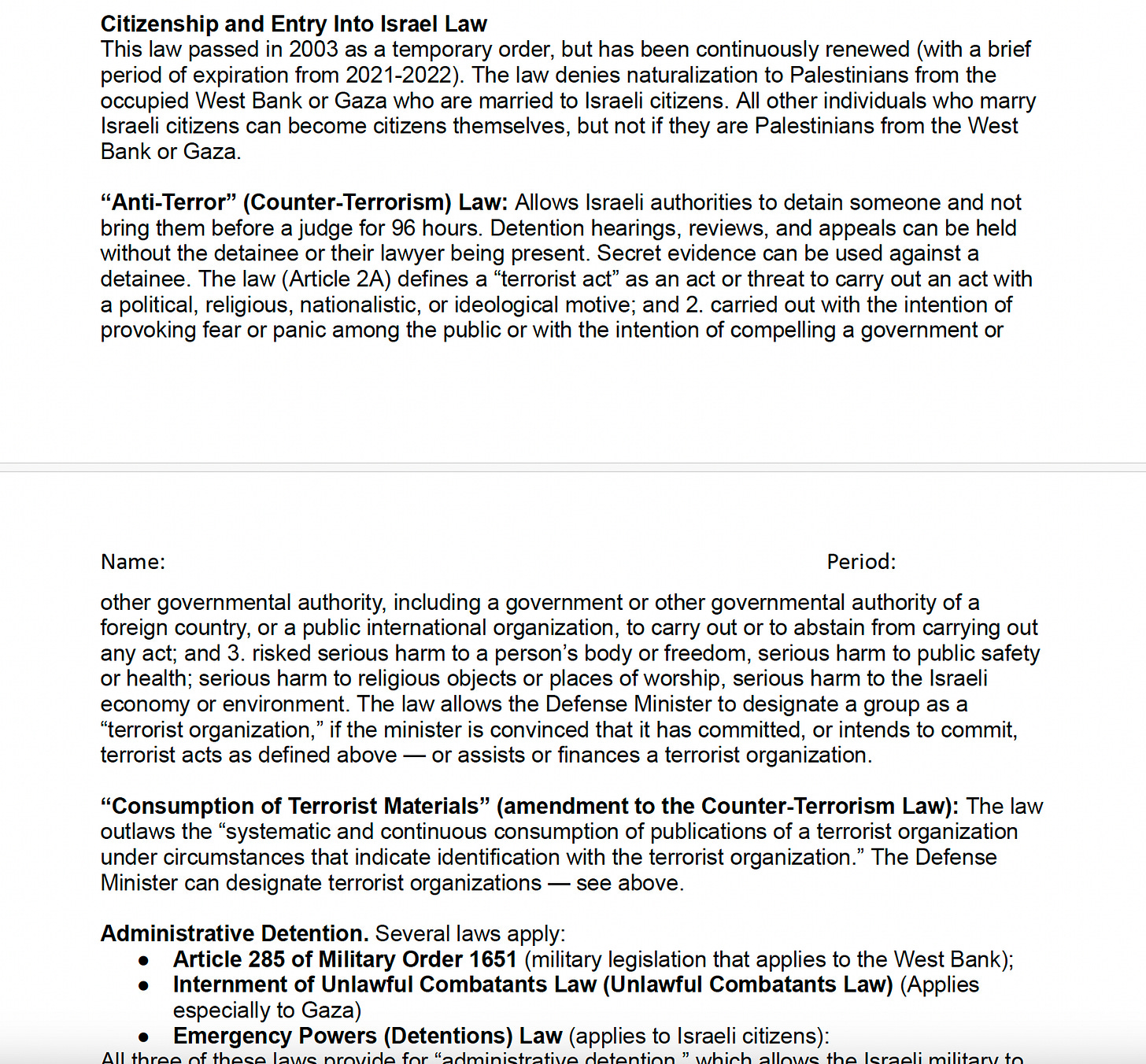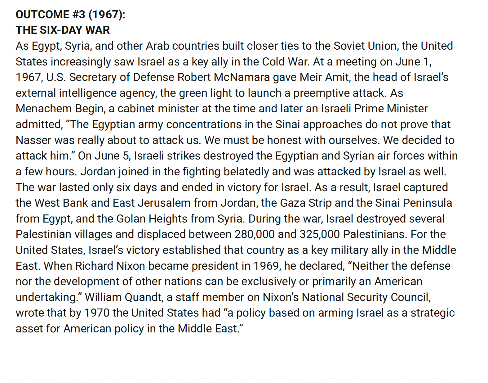 And so I wanted to create a lesson that would take students from post 1948 to relatively recently, like past the Oslo process and to this ends with the kind of rise of Hamas and Hamas winning the elections in Gaza in the early 2000s. And the US reaction to that. So part of the reason I created this was to kind of span a large portion of history in a relatively short amount of time. The other reason was because we really wanted a lesson on the US’ role in all of this, right?