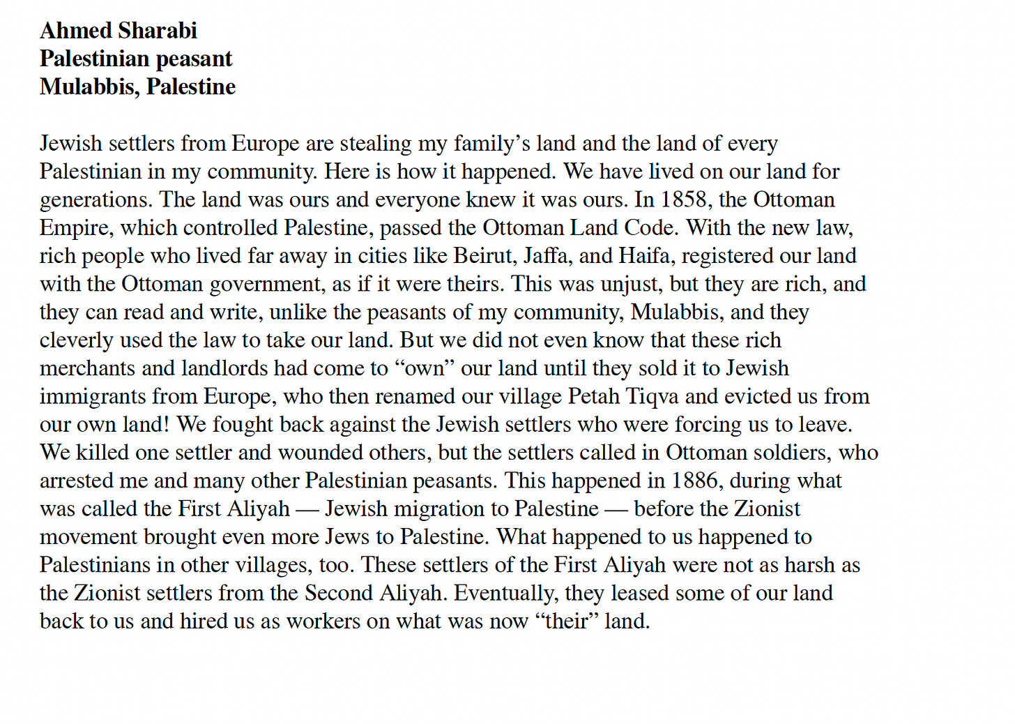 So the first thing you said about this, the power indifference, we’re seeing that there’s been this kind of partnership with Empire throughout this whole time. So Zionists, they start with this kind of partnership with Empire, with the Ottoman Empire, with that land code. Like exactly what you said. That Ottoman Land code allowed all these absentee landlords to own huge swaths of land in Palestine, and then they sold them to the Zionist organizations in many cases. It wasn’t necessarily like a stealing of the land, it was the buying of it. And I think for those of us who’ve learned about gentrification, we can understand how even when you go about these legal routes, there can still be major injustices happening, like all these Palestinians being evicted. Then of course we see the partnership with the British Empire, with the Balfour Declaration, et cetera. Then today, partnership with the American Empire, right?