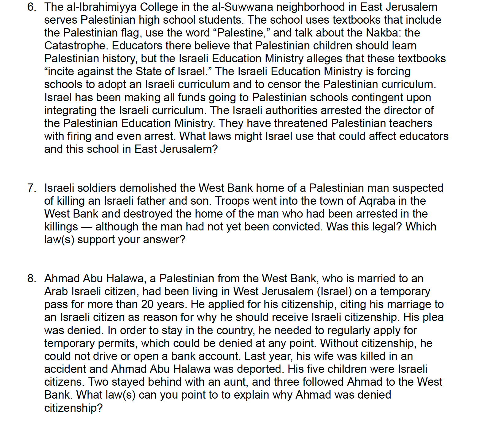 In this session, participants were given certain Israeli laws to review and discuss and then were given “situations” to analyze and determine which laws might apply.