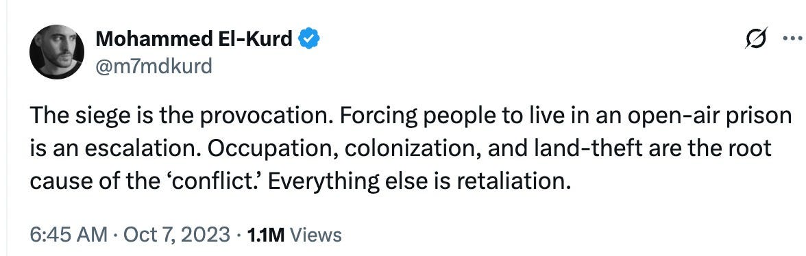 So interesting.. the antisemitism on the left. So address that really quickly. So we really resist the notion. We hear sometimes that there is an issue with antisemitism on the left. Can individual people on the left or who call themselves pro-Palestine or anti-Zionists say something antisemitic? Of course, anybody from any community can say something antisemitic that goes against the ideology that they claim to espouse. But two things. One is that it’s not specific to the left, it’s just antisemitic. And two, if someone on the left says something, antisemitic, again, not critique of Israel or Zionism, nothing to do with that. But if they say something that is actually antisemitic as a movement as the left, we denounce it. Right? I mean, that’s sort of how we approach that question of antisemitism on the left. It’s just antisemitism that again, can be that we denounce. Right?(emphasis added)