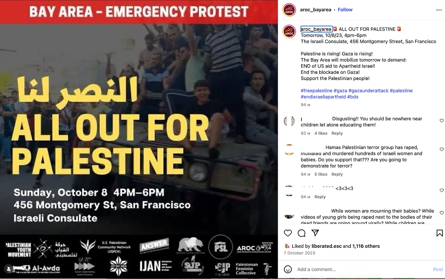 Kiswani’s AROC celebrated the October 7, 2023 Hamas massacre.
