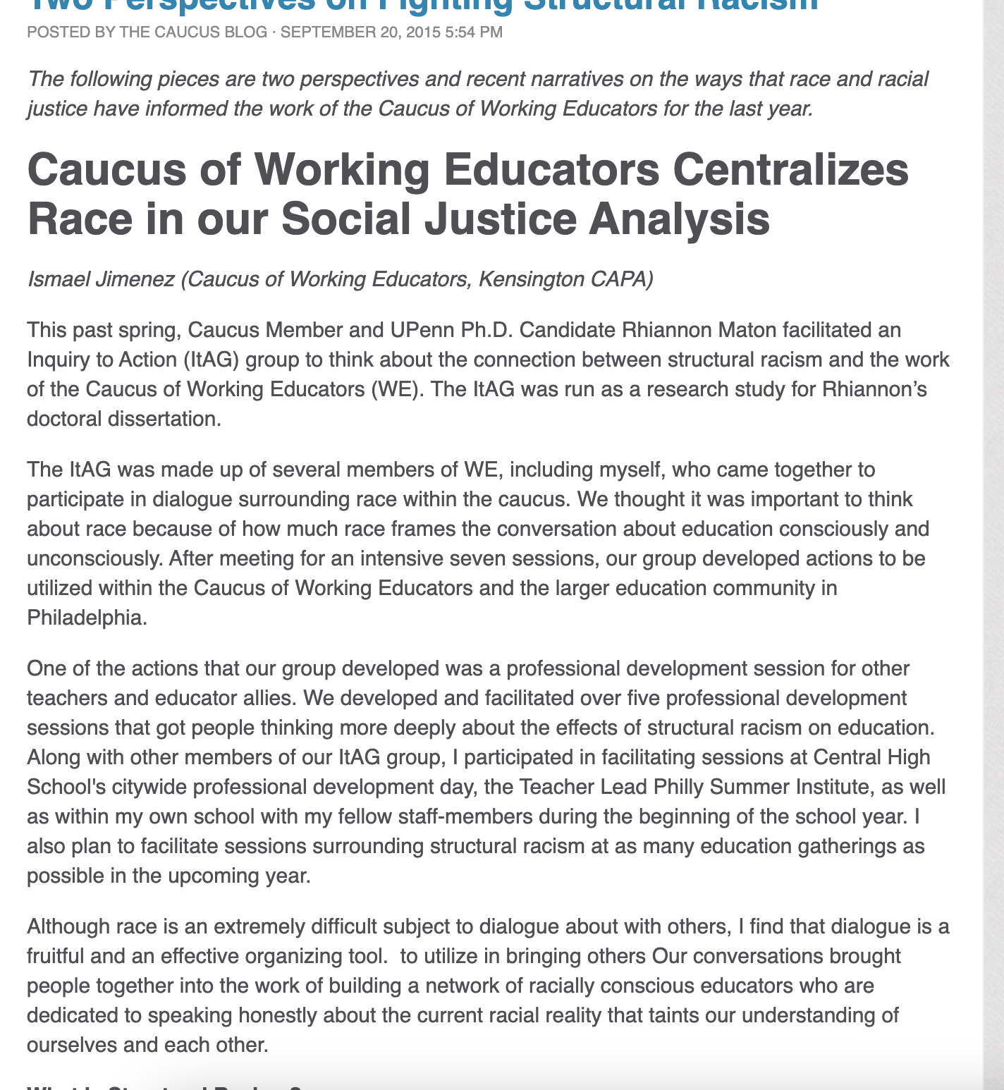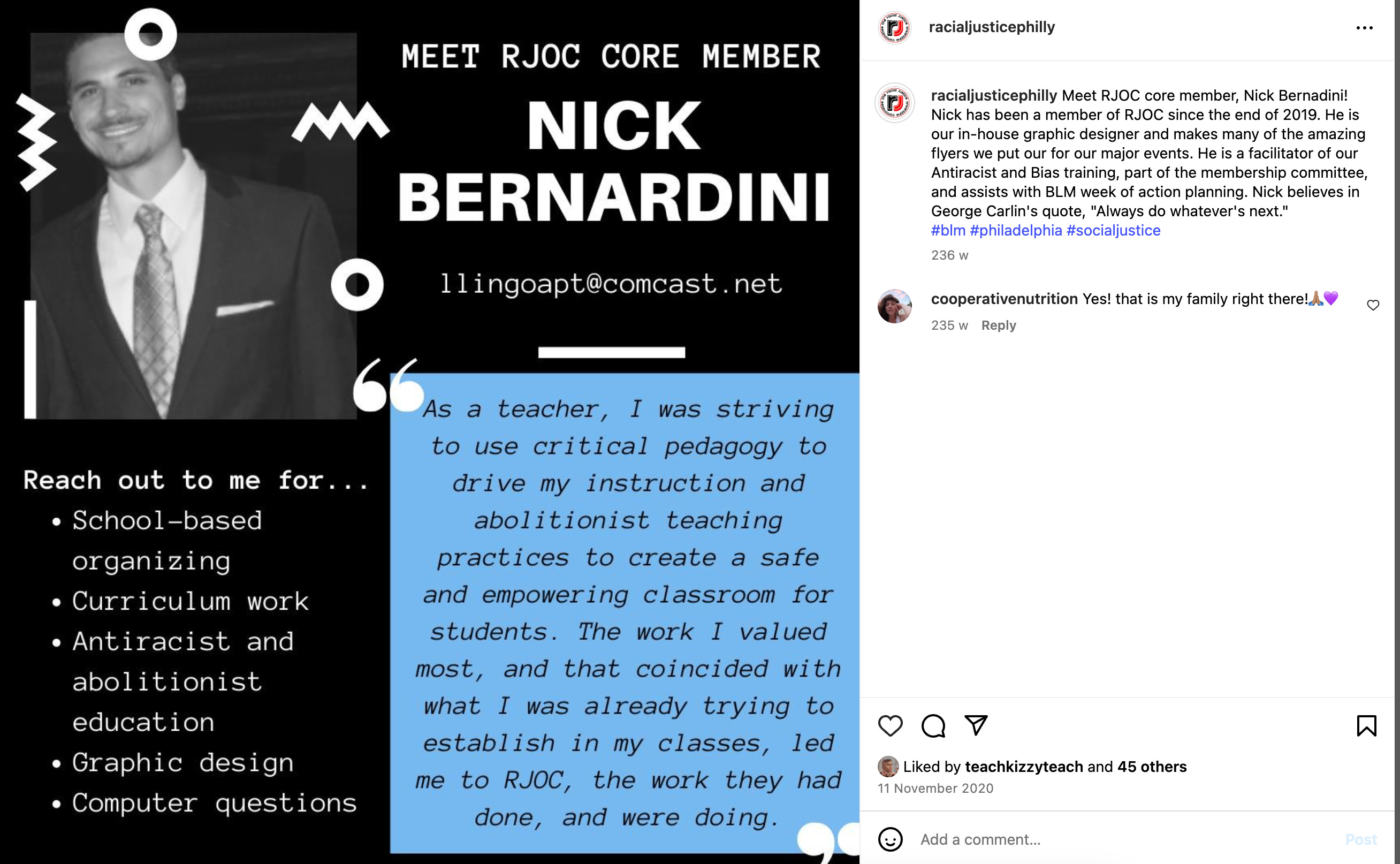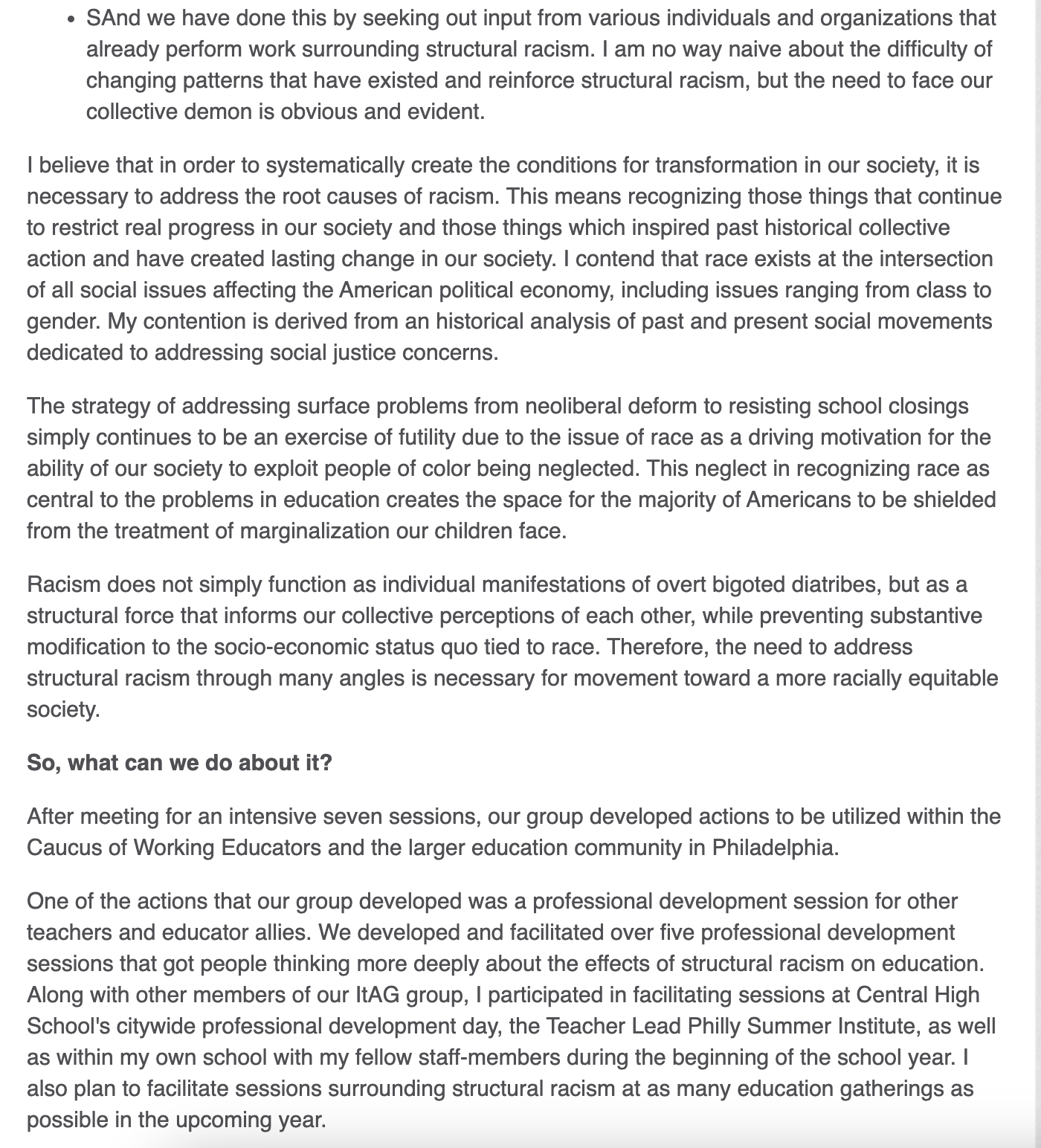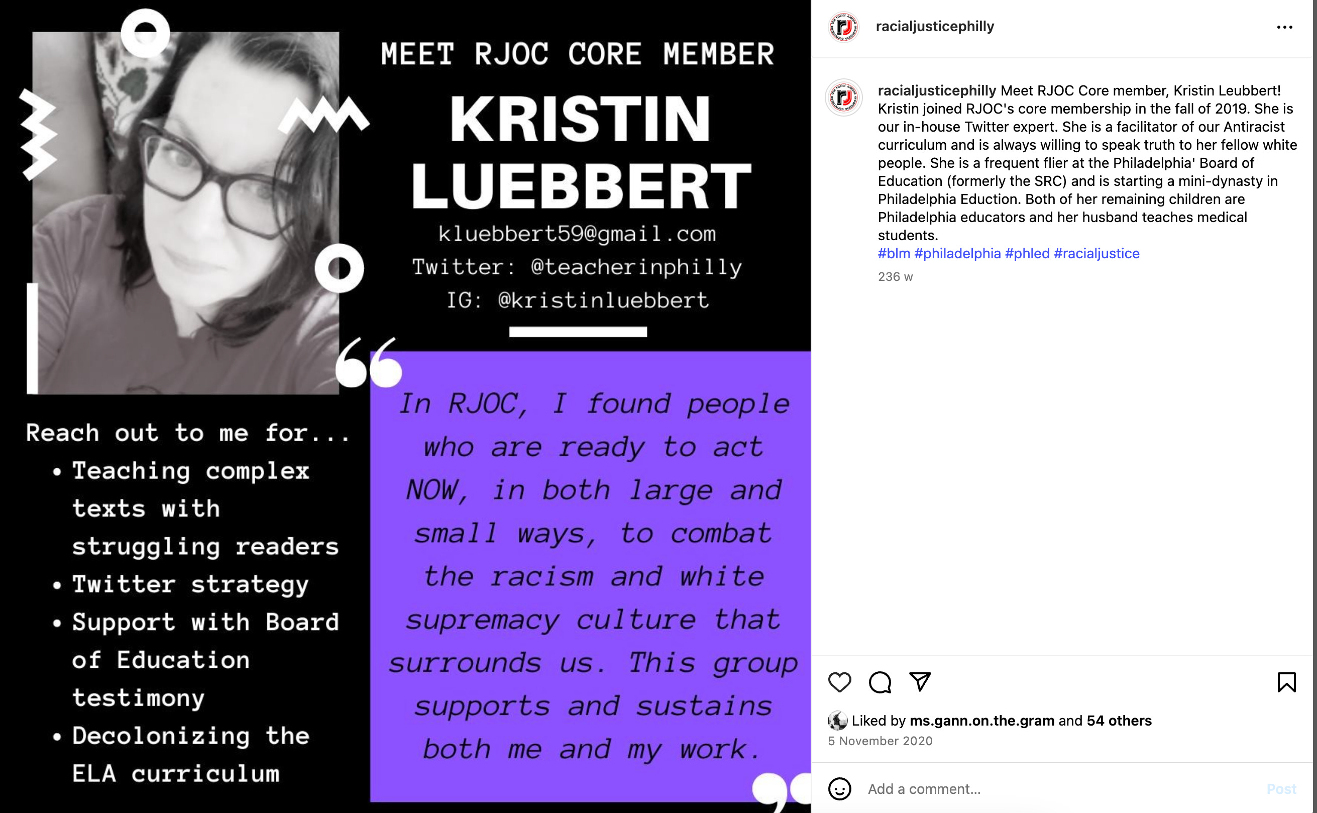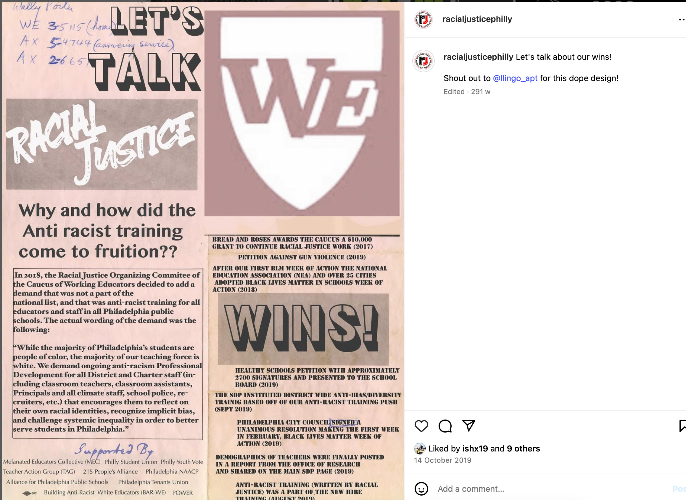 So, the CWE was formed in 2014. The Racial Justice Organizing Committee, with most of its founding members, decided in 2020 to become an independent organization - with a list of demands for Philly schools. In 2022, Ismael Jimenez, a founding member of CWE and the RJOC becomes the Director of Social Studies Curriculum for the entire district. An interesting hiring decision indeed.