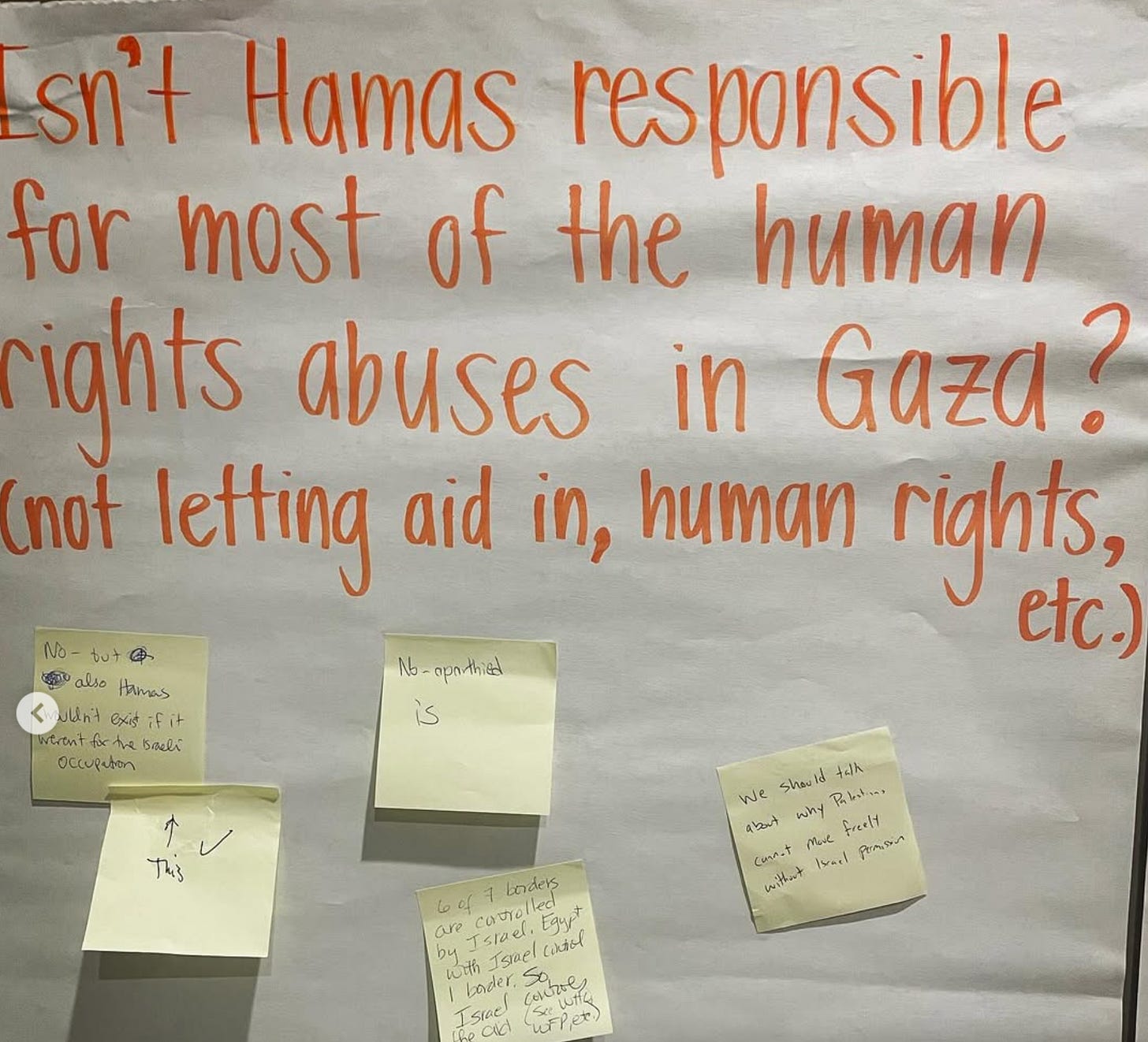 In the same “Teach-In”, they decline to blame Hamas for human rights abuses in Gaza, instead, in a shocking turn of events, blaming Israel: