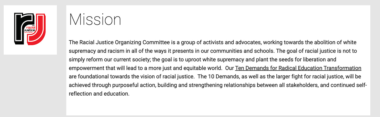 We demand mandatory antiracist training for all educators and that school leaders have standardized measurable plans and goals for cultural competencies of staff, integrating racial literacy into mandated teacher planning expectations, and at the individual school level looking at trends related to school discipline, staff demographics, and academic access.