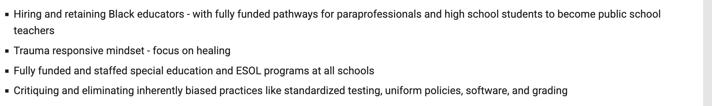 We demand equitable access to all learning institutions and tracks (Magnet schools, AP/IB, and honors courses) for students and opportunities for Black Educators & Educators of Color to teach those classes.