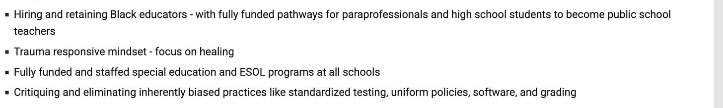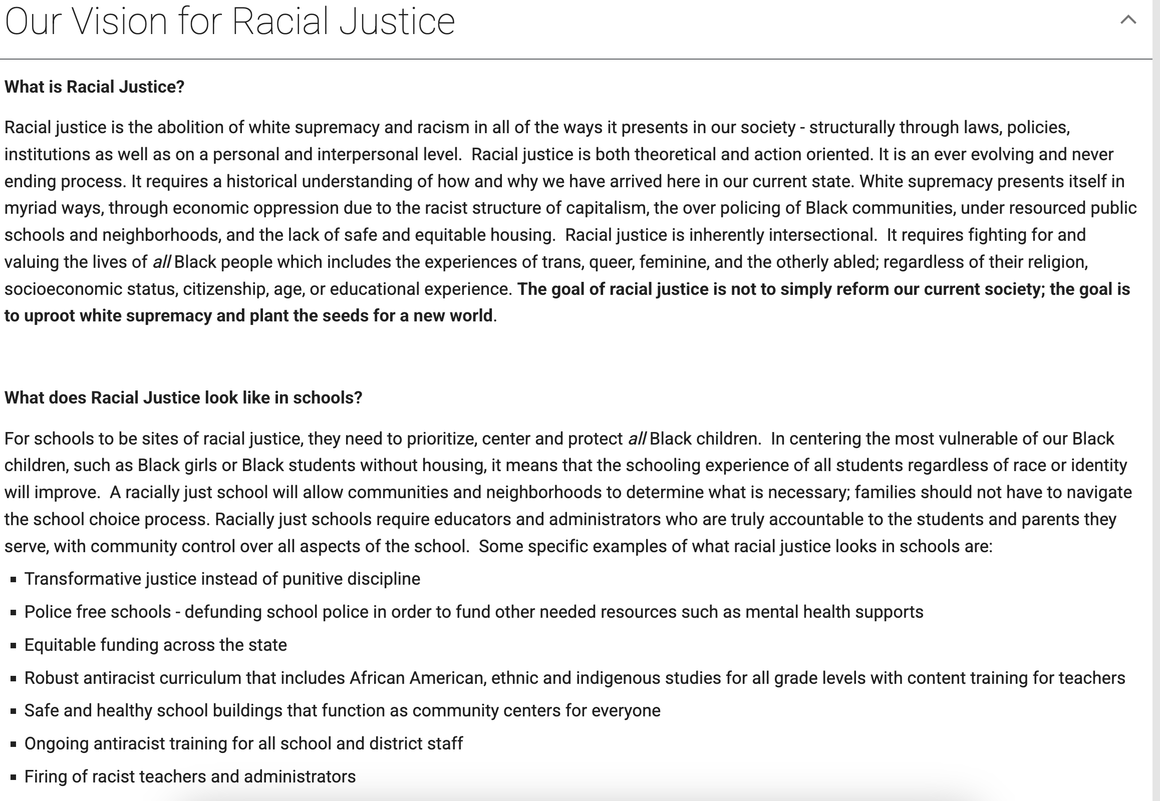 OK. I just looked it up and half of their 8th graders are below grade level in English and 75% are below grade level in math. So, despite their claims, none of this pandering is going to move the needle in that. They just claim that tests are “white supremacy”. But if the students can't read, then they are at the mercy of these teachers telling them what to think. It's malpractice.
